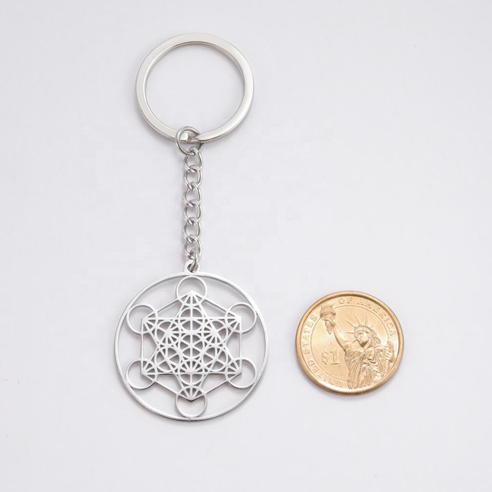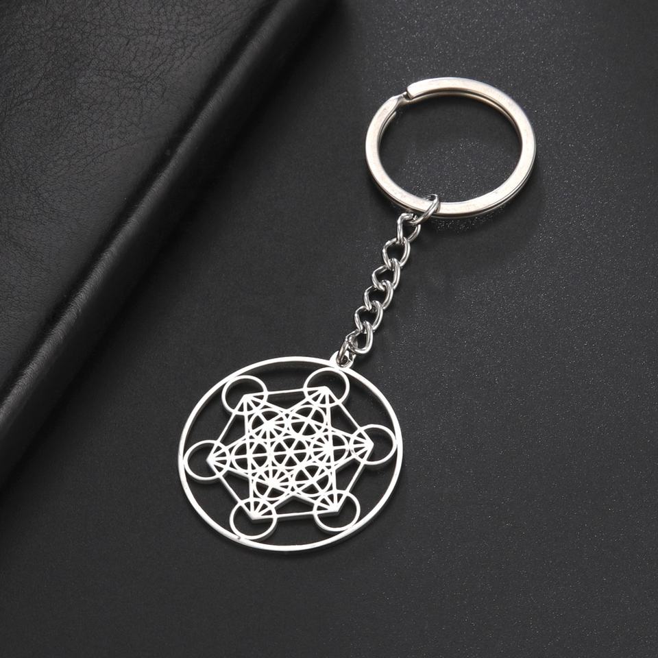 Metatron Cube Porte-clés Acier Inoxydable Ange Sceau Sacré Géométrique Kabbalistes Jardin Salomon Amulette pour Femmes Hommes Bijoux Nouveau