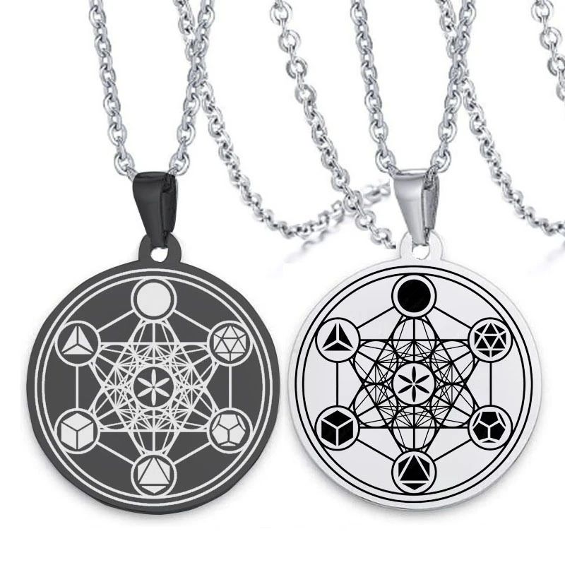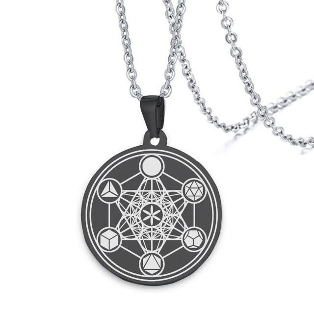 Collier Cube de Métatron, Géométrie Sacrée, Sceaux des Archanges, Sigil d'Ange, Pendentif en Acier Inoxydable, Amulette Occulte, Collier de Salomon