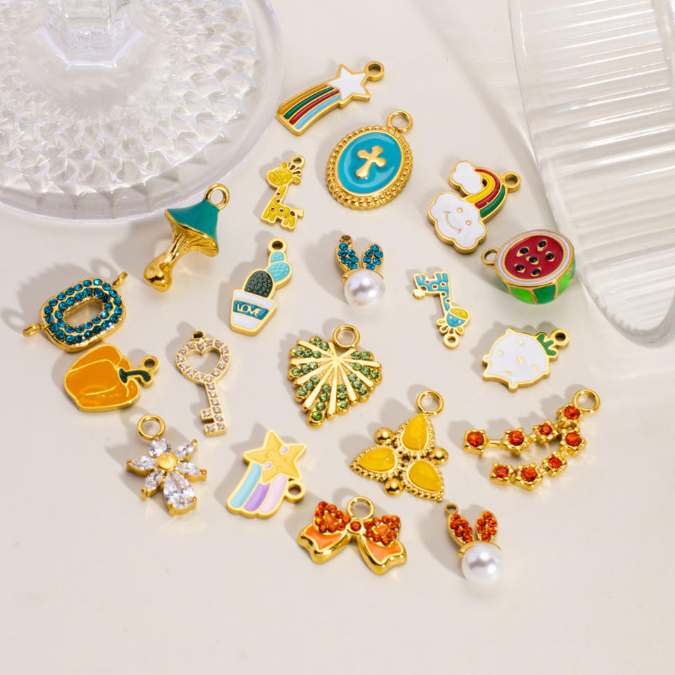 Meteor arc-en-ciel pastèque Cactus citrouille goutte d'huile bricolage accessoires faits à la main pendentif en acier inoxydable