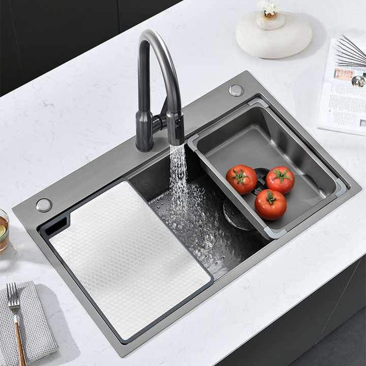 Évier de cuisine à montage encastré sous plan, grande cuve unique, en acier inoxydable SUS304 épaissi de 5 mm, motif météorite
