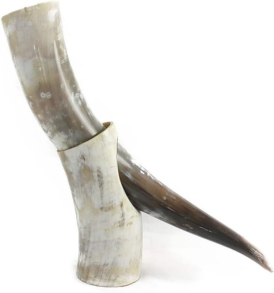 Methorn Finished Animal Religious Carved Drinking Horn with Iron Stand Trinkhorn Authentic Crafted Hornware Agate