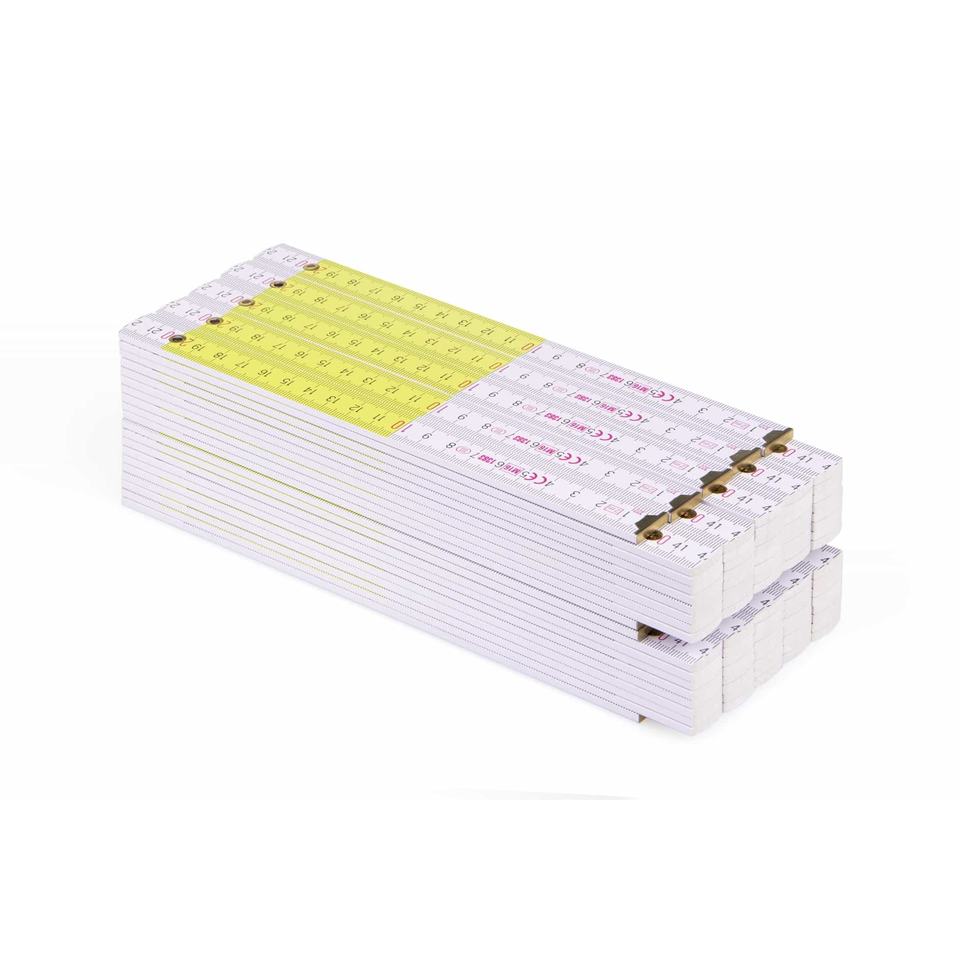 100 pcs | Metrie 2m règle pliante Block 52 | Blanc-Jaune | Joints en acier trempé