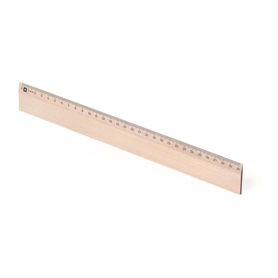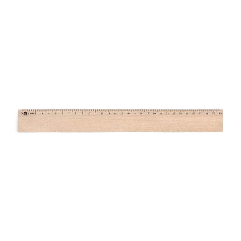 Metrie, Scholar-M30, règle en bois, 2 bords biseautés, échelle en mm des deux côtés, avec trou de suspension, 30 cm