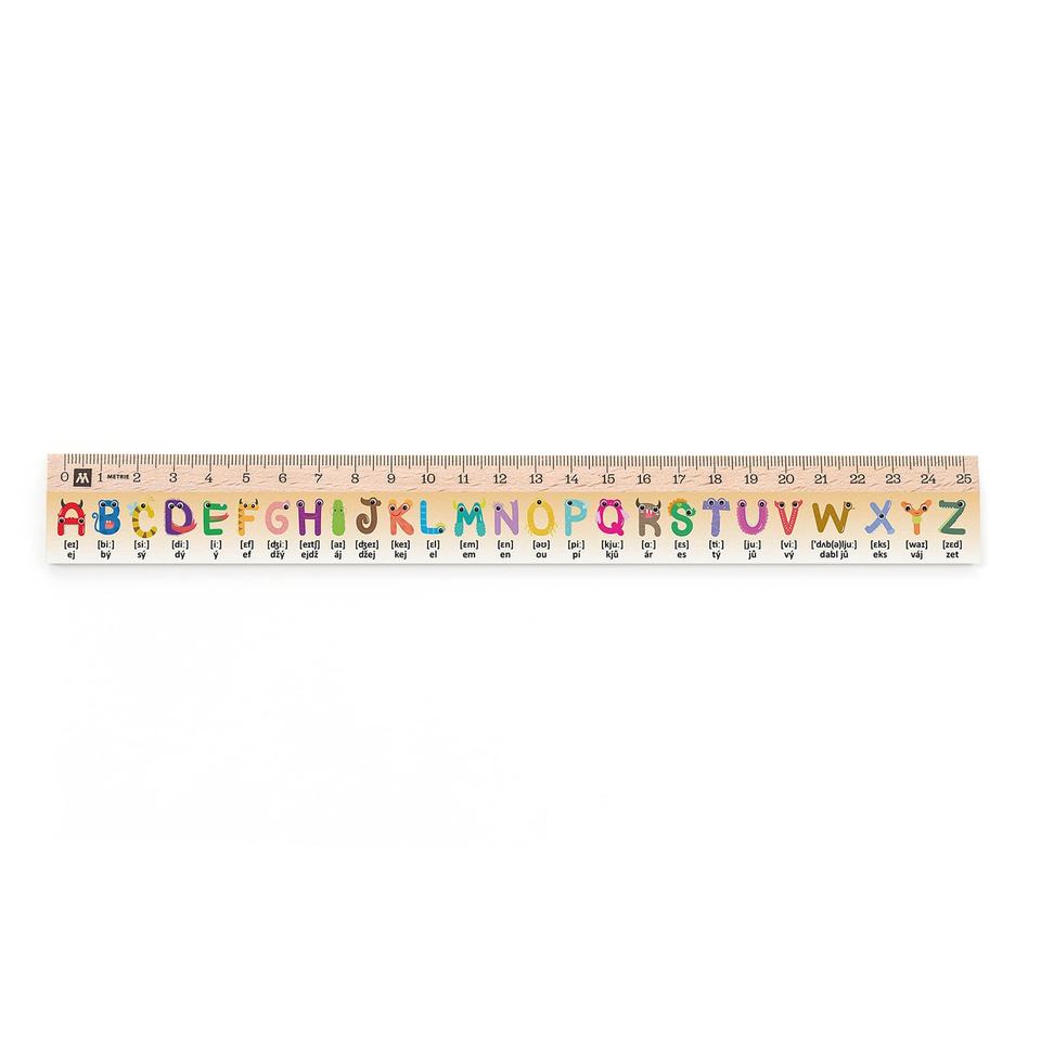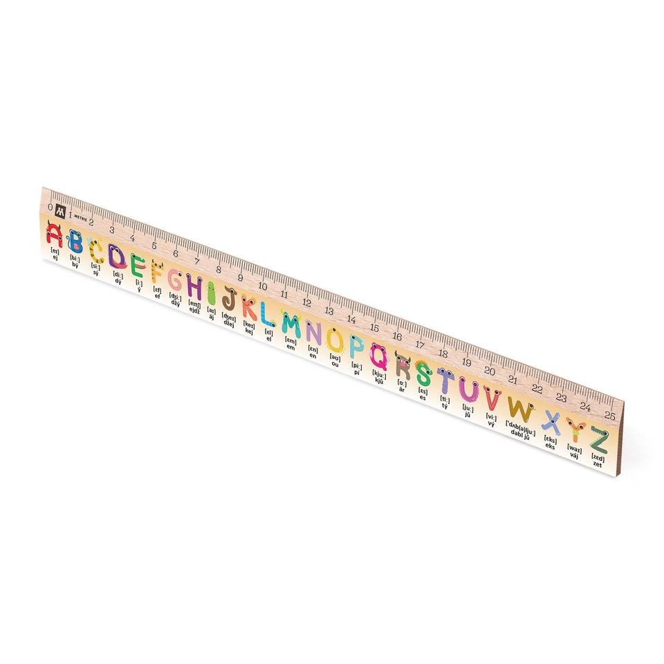 Metrie, Didakt-M07 Règle en Bois, Alphabet Anglais Imprimé, 25 cm