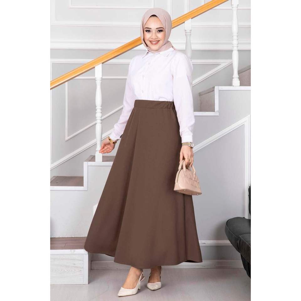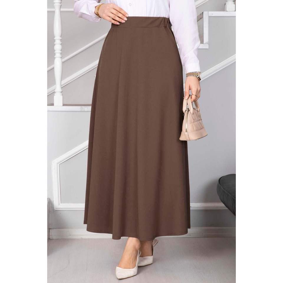 Mevlana Casual Fit Straight Pleat Skirt for Girls Women Denim Knitted Fabric Dark Mink Hijab Short Length Tennis Occasion Large