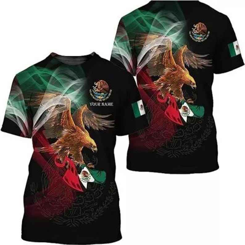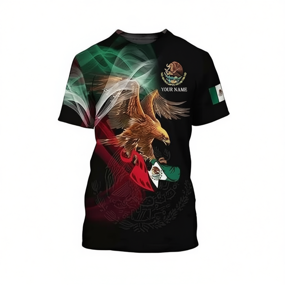 T-shirt Mexicain Aigle 3D Personnalisé Nom Drapeau Mexique Fierté Effet Fumé Manches Courtes Col Rond Unisexe Impression Numérique