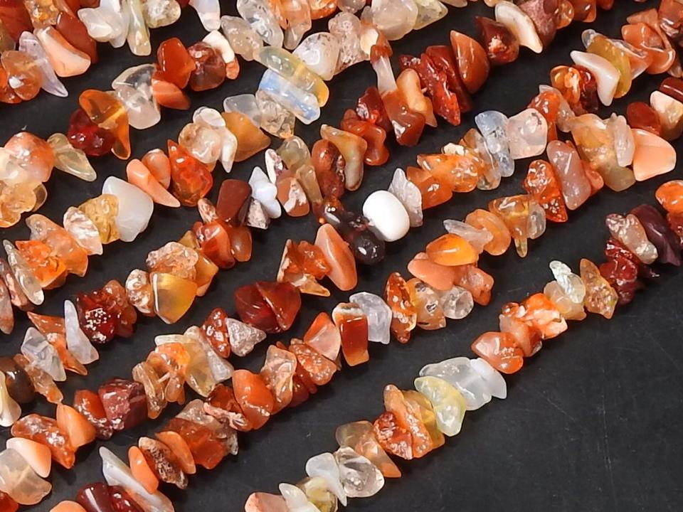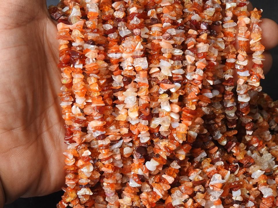 Perles d'Opale Mexicaine - Pierre brute polie non taillée en copeaux et pépites - Fil de 34 pouces - 4-5 mm - Trou d'environ 0,5 mm - Certifiées par un tiers - Pierre multicolore