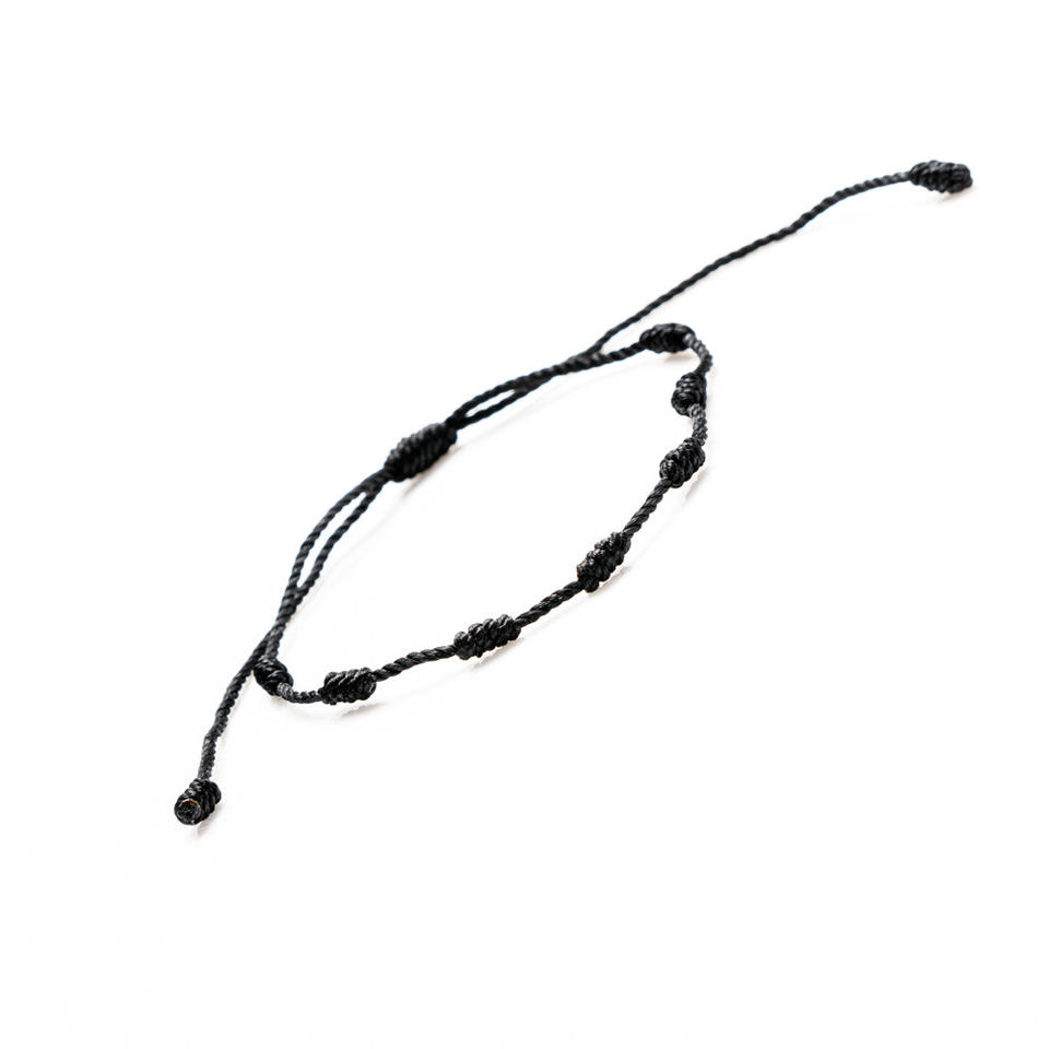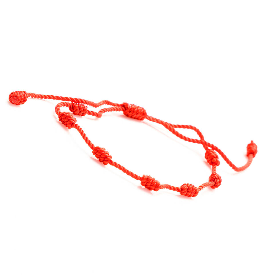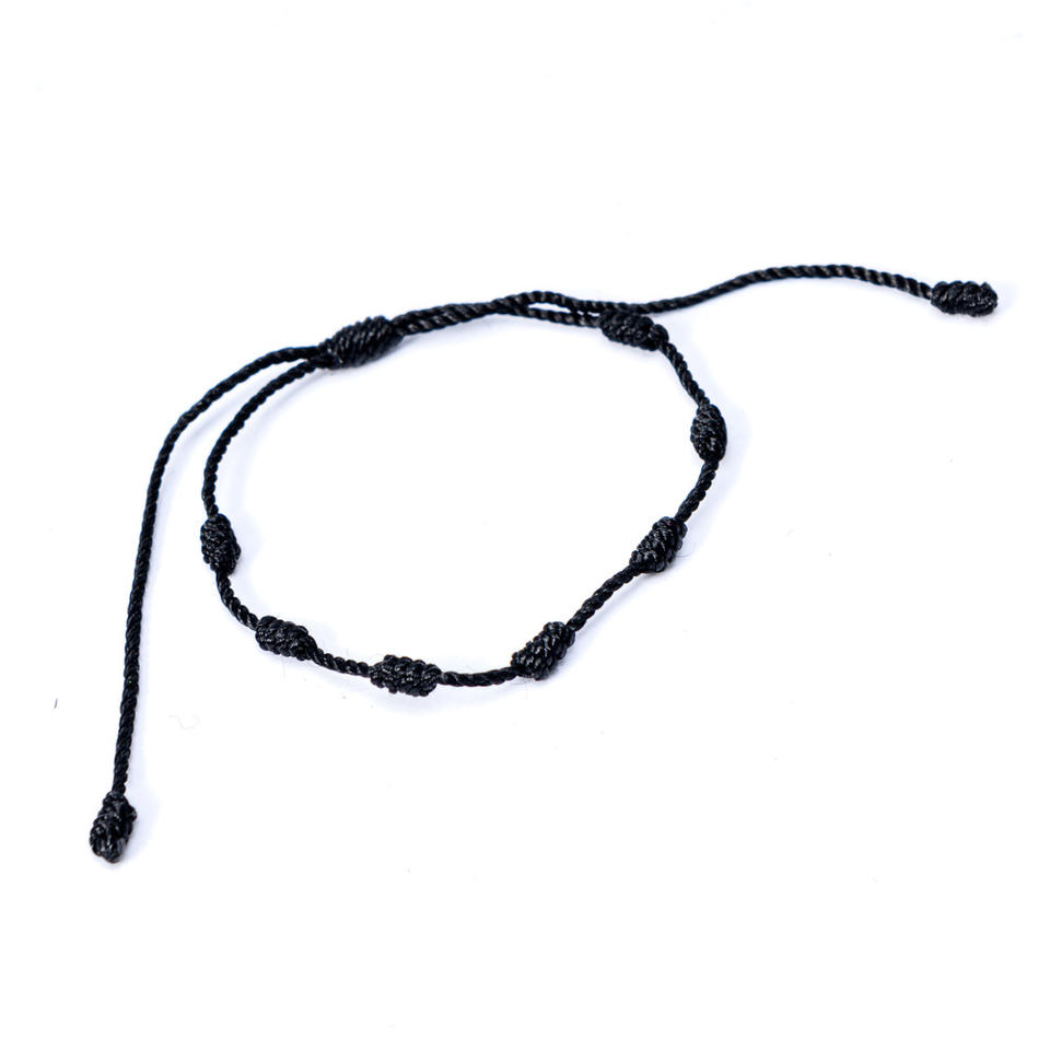 Bracelet en corde rouge fait à la main, Style mexicain espagnol chaud ne se décolore pas rouge et noir tissé à sept nœuds