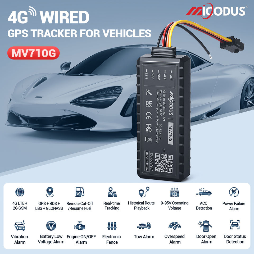 MiCODUS Nouveau Localisateur de Véhicule pour Gestion de Flotte, Coupure Carburant MV710G 4G, Dispositifs de Suivi de Voiture en Temps Réel GPS Traceur pour Moto