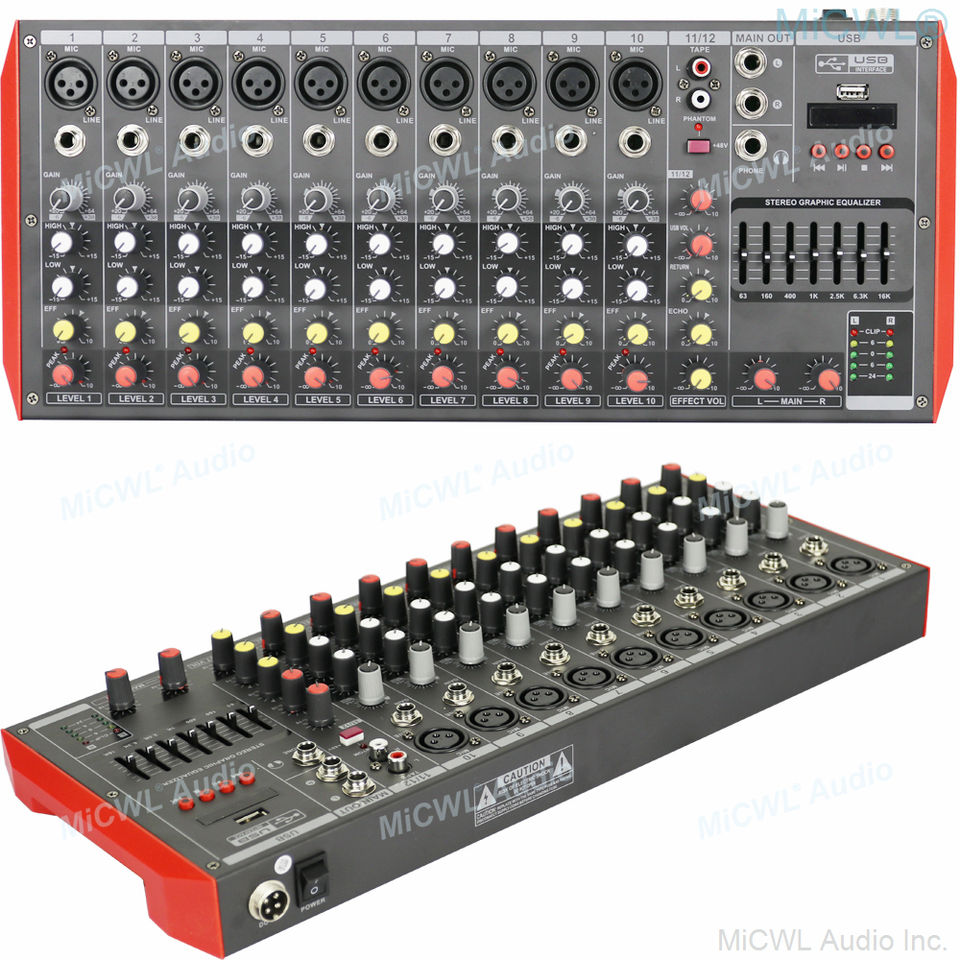 Console de mixage audio numérique MiCWL 12 canaux avec alimentation fantôme 48V, système de sonorisation USB MP3 pour ordinateur, studio DJ stéréo, égaliseur 7 bandes MG12
