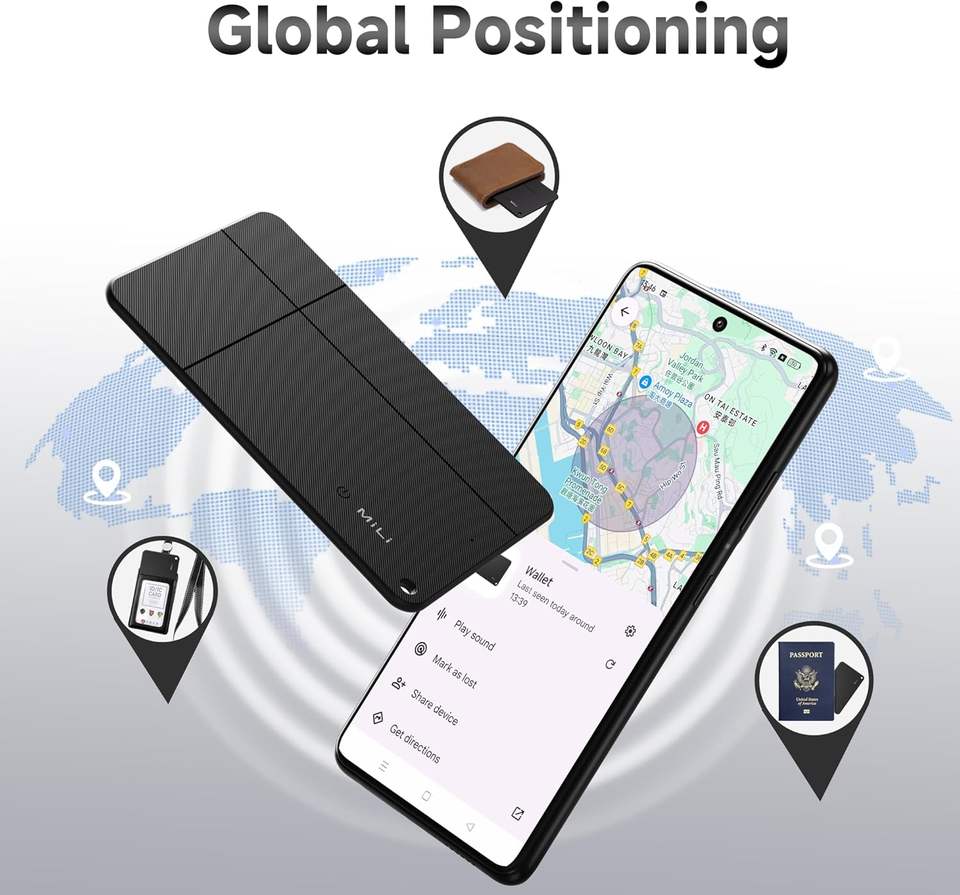 MiLi MiCard Duo : Portefeuille numérique anti-perte avec suivi Apple et Google Find My, compatible charge sans fil