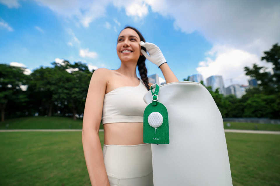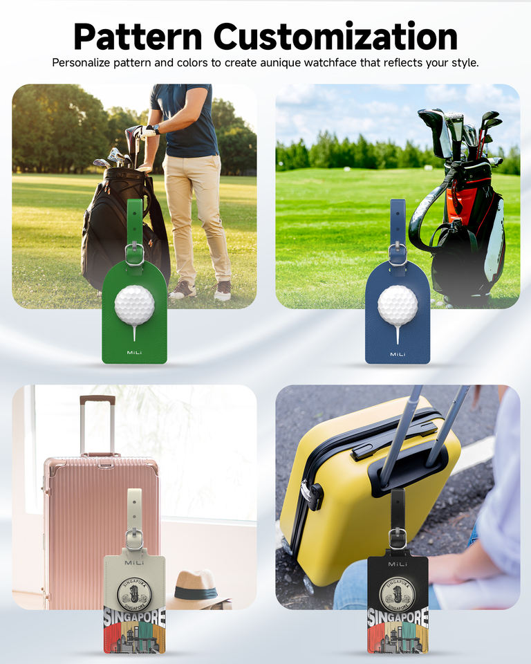 Étiquette de sac de golf en cuir microfibre MiLi avec MiTag Duo intégré, compatible avec Apple et Google Find, traceur intelligent anti-perte pour sac de golf