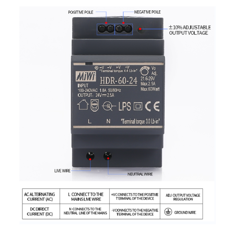Courant AC (Typ.):0.5A/115VAC 0.25A/230VAC