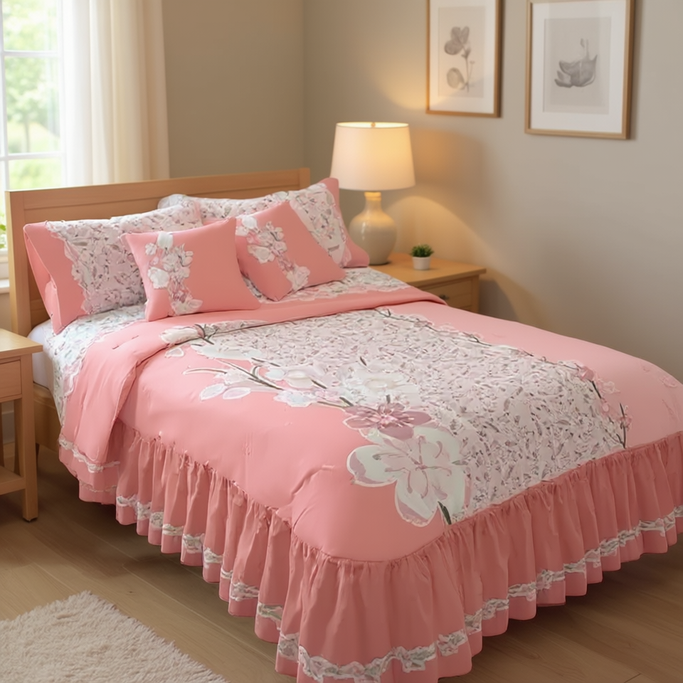 Couette double Mia avec 2 coussins comprenant des appliques brodées, classique, pour toutes les saisons, literie pour la maison