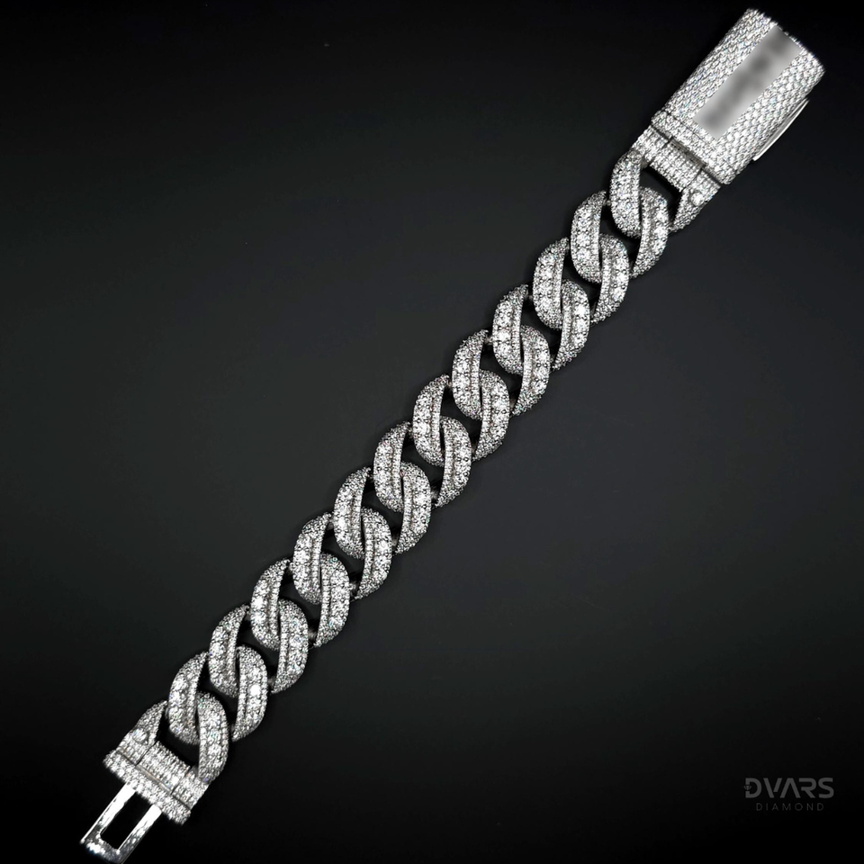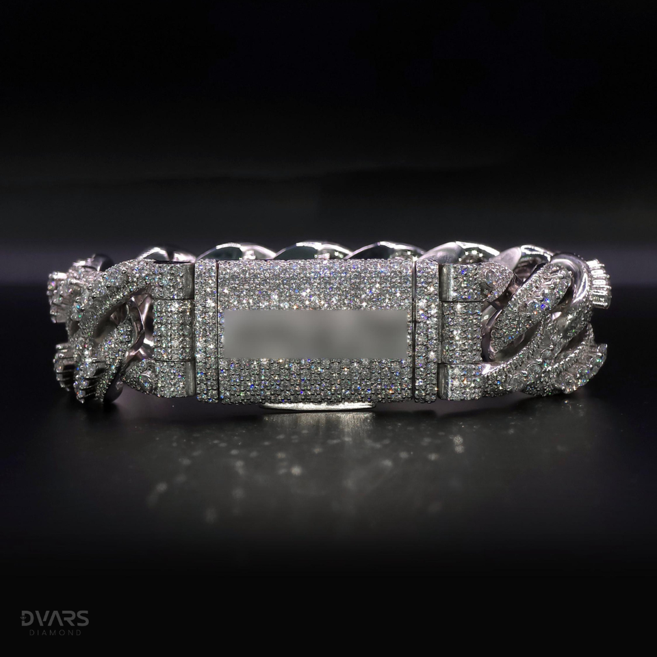 Bracelet Miami Cuban Chain Link personnalisé en Moissanite VVS, serti de diamants, en or blanc, bijoux Hip Hop pour hommes et femmes