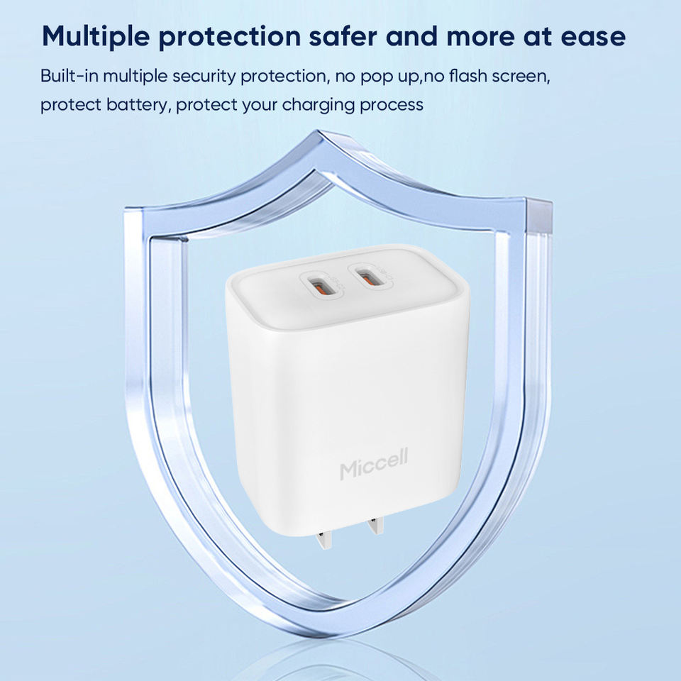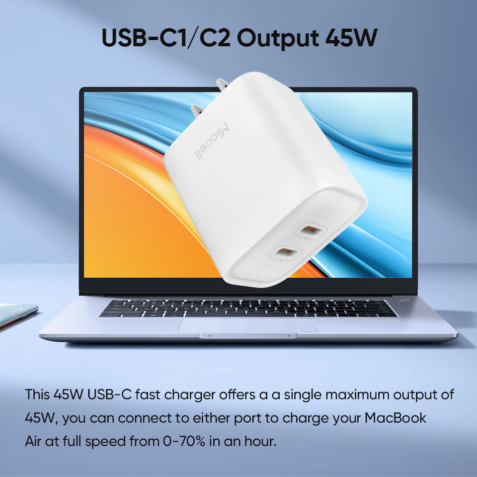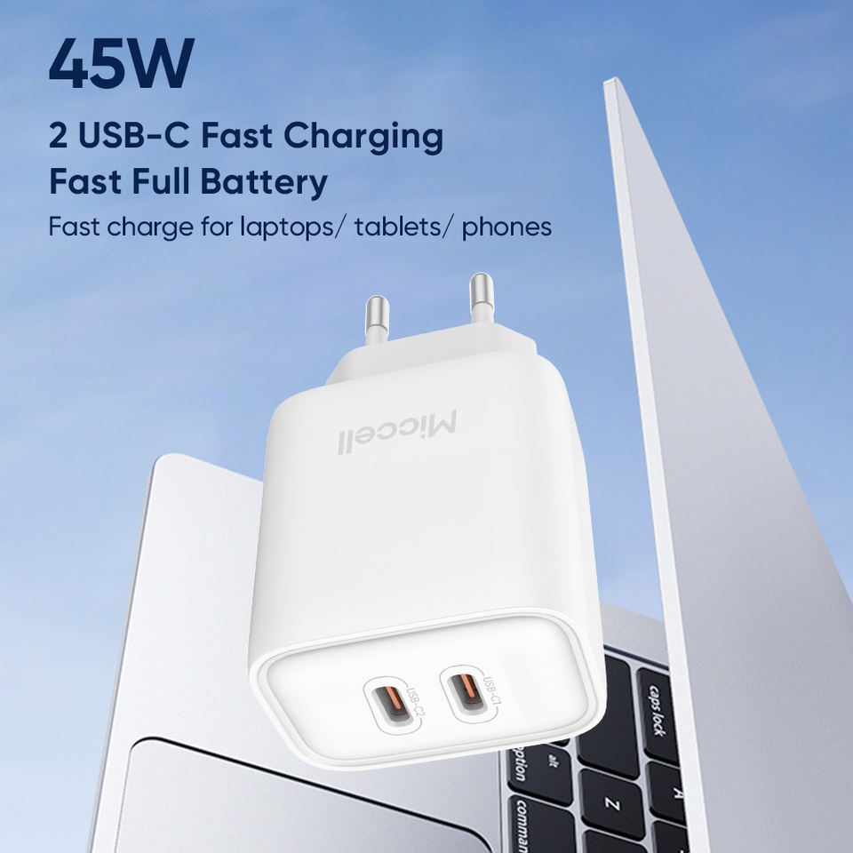 Chargeur rapide USB-C Miccell 45W PD3.0 avec protection OTP/OVP pour téléphones portables et ordinateurs portables - Sortie 30W