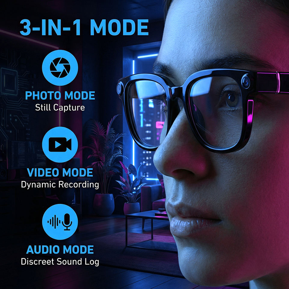 Lunettes intelligentes Miccell AI Translation avec caméra HD 1300W, charge magnétique, appels téléphoniques, lecteur de musique, contrôle tactile par application