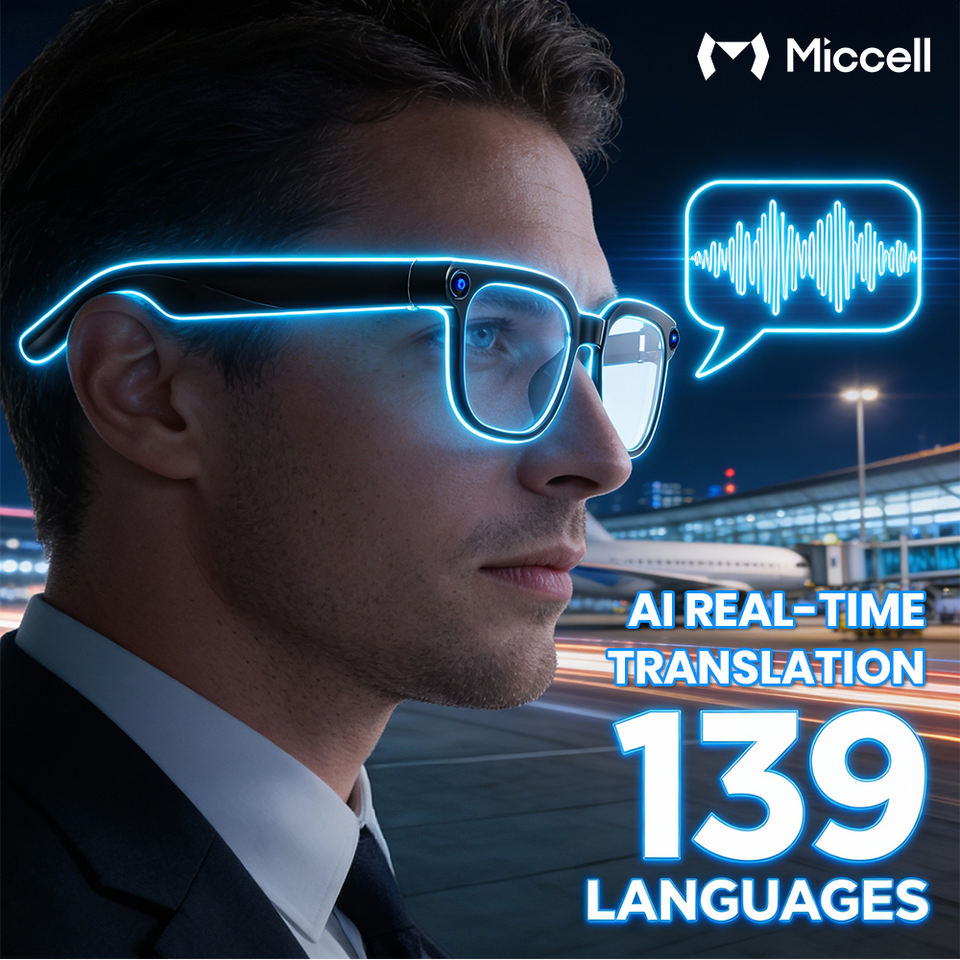 Lunettes intelligentes Miccell PAG01 avec IA, indice d'étanchéité IP65, traduction en temps réel par IA, caméra invisible 8MP, écouteurs ouverts, mains libres