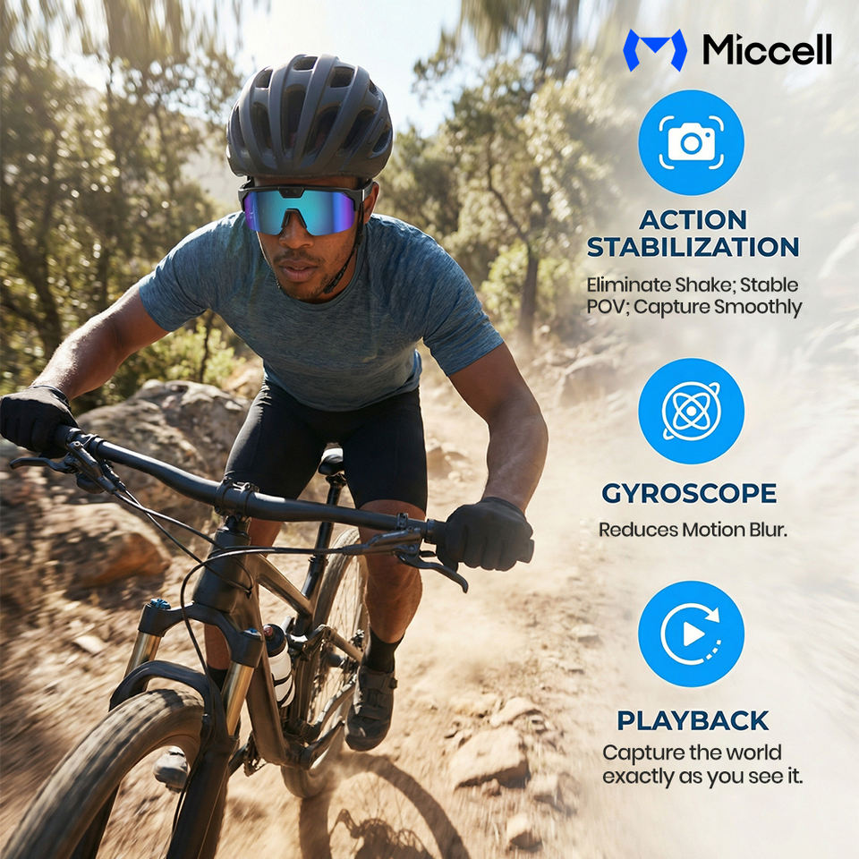 Lunettes intelligentes Miccell PAG05 avec puces AI, caméra 8MP, batterie 270mAh, charge magnétique, assistant vocal AI, appels vocaux