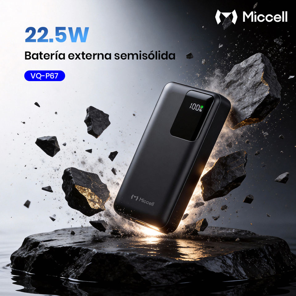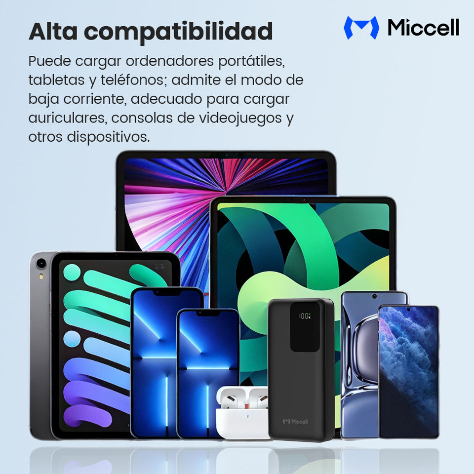 Batterie externe Miccell avec charge rapide PD 22,5 W et affichage numérique, comme chargeur portable pour les voyages et les professionnels