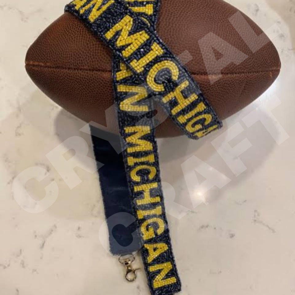 Sangle de sac à main en perles du Michigan, personnalisée, en perles de graines dorées blanches, accessoires faits à la main, sangle de sac pour les journées de jeu des sororités