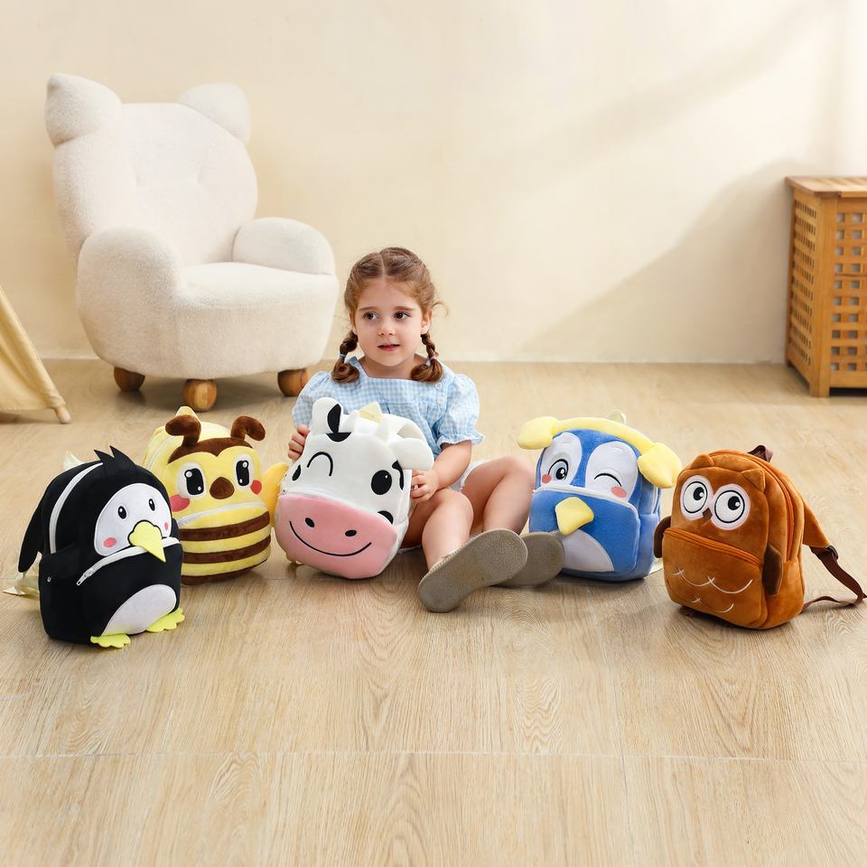 Sac à dos léger en polyester 3D de style animal Michley pour enfants tête de veau de bétail jaune étanche pour la garderie scolaire