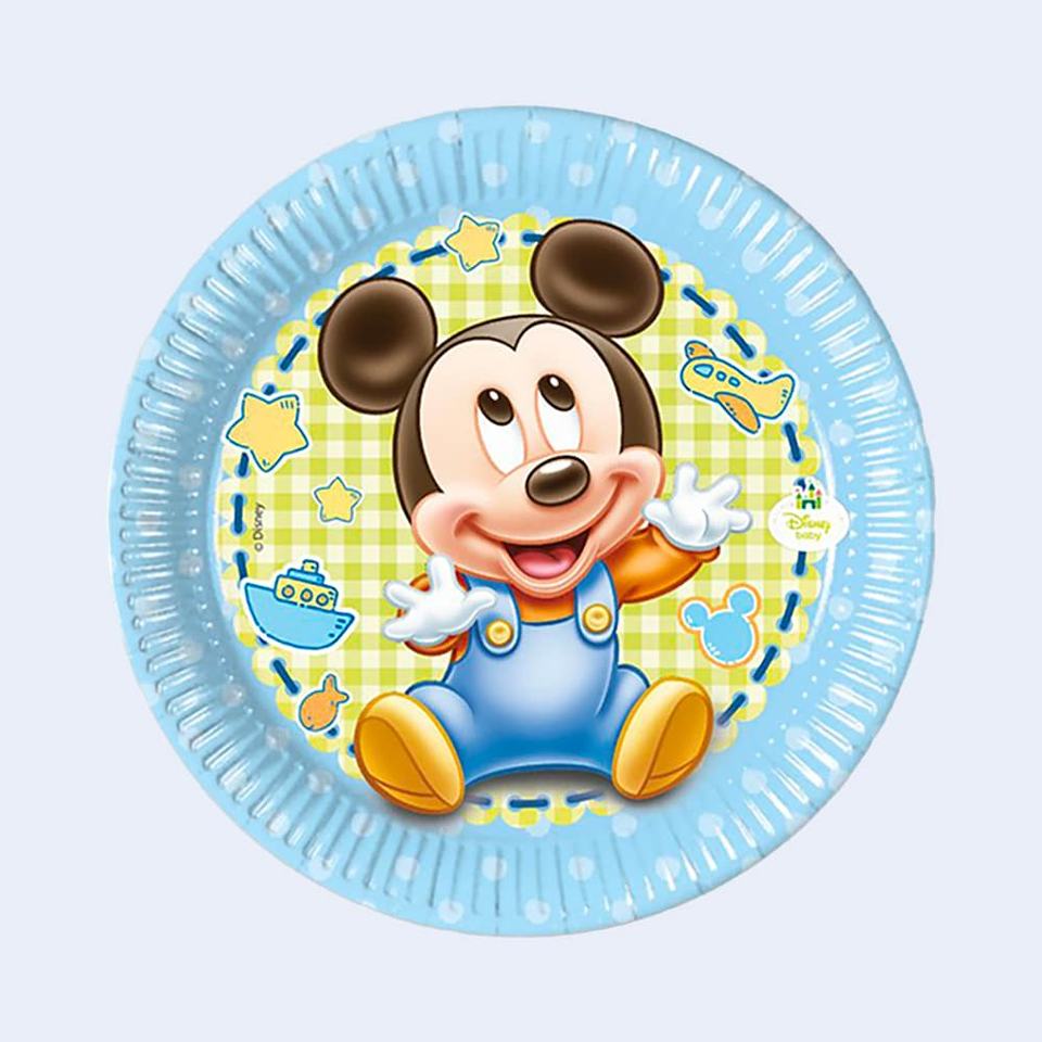 Assiettes jetables Mickey Baby 19,5 cm, 6 pièces, vaisselle de fête pour enfants, célébration d'anniversaire