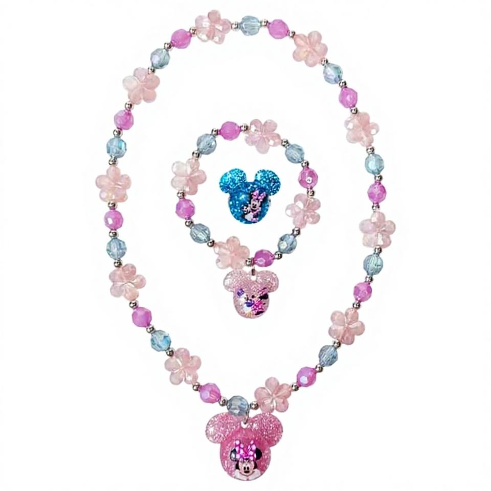 Accessoire de jeu Mickey et Minnie Mouse, ensemble de 3 pièces, bijoux fantaisie, collier de perles, bracelet, 150 unités, vente en gros, carton, livraison gratuite, mignon