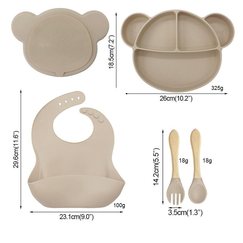 Mickey Mouse Classic Dinner Plate Four-Piece Set Anti-drop Anti-scalding Easy Clean Silica Gel Baby Complementary Food Tableware