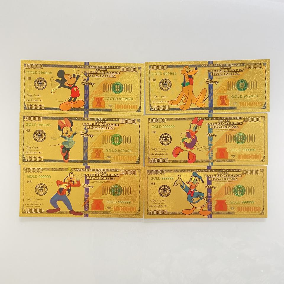 Billets de banque de dessins animés célèbres de Mickey Mouse, Minnie, Donald Duck, Daisy, Goofy et Pluto pour cadeaux et souvenirs