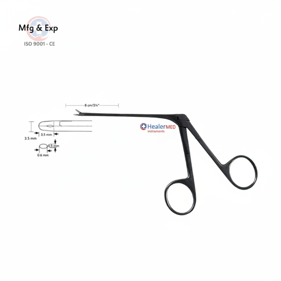 Micro Ear Forceps:Cup Shaped, Bent Upwards Black Coated