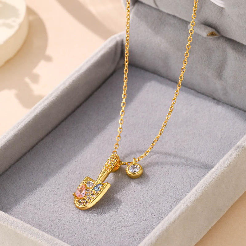Pendentif pelle en or micro-incrusté de zircone pour femmes, design rétro élégant, collier tendance de luxe léger