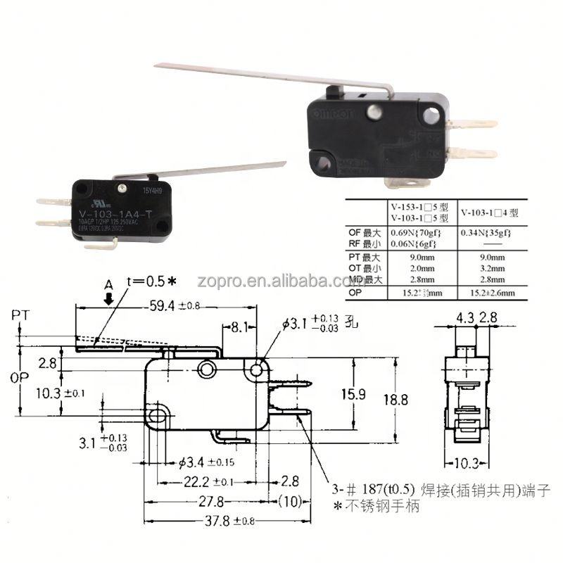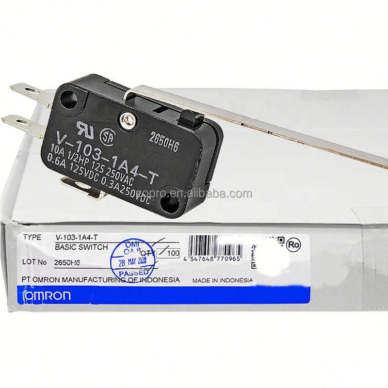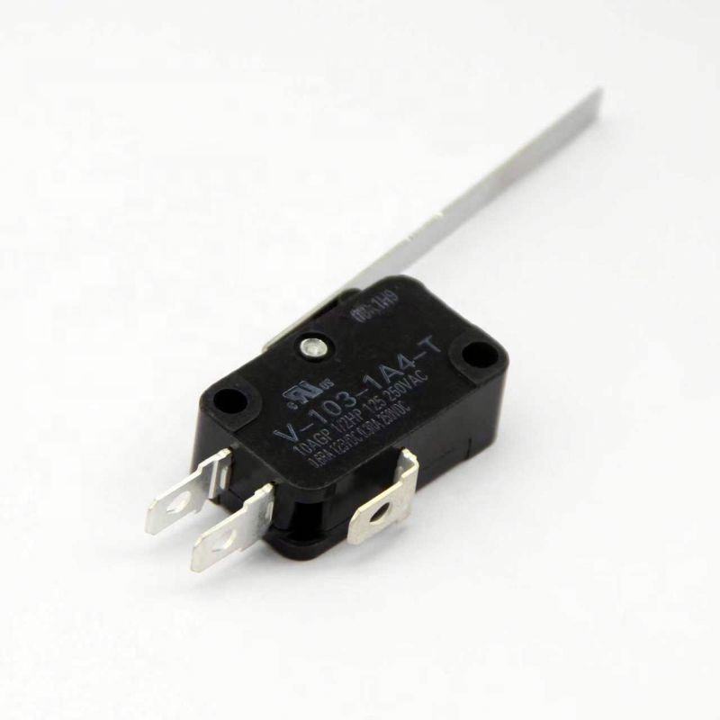 Micro-interrupteur à bouton 10A, résistant à la chaleur, petit interrupteur à longue tige V-103-1A4-T