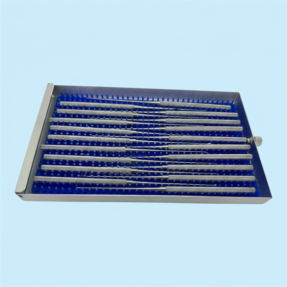 Kit de micro-crochets à nerfs avec plateau, spatule vasculaire, curette, dissectionneuse pour neurochirurgie