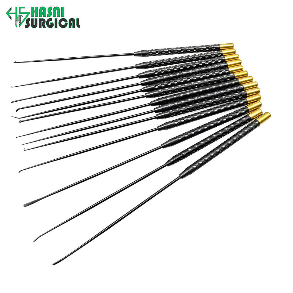 Micro-couteau à visseuse pour nerfs et vaisseaux, spatule dissection en forme de goutte d'eau 8*0.9mm, curette en acier inoxydable, ensemble d'instruments manuels de neurochirurgie CE