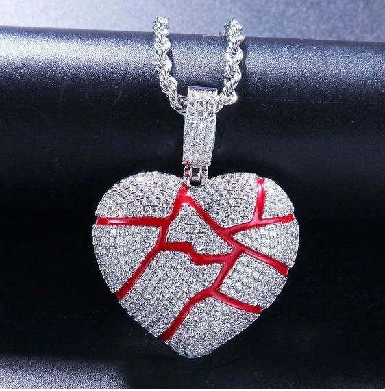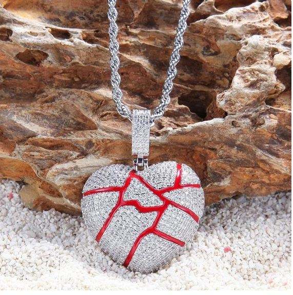 Charmes en forme de cœur micro-pavés avec diamants CZ glacés, argent sterling plaqué or, bijoux classiques en forme de cœur brisé, cadeau pour lui/elle, fêtes