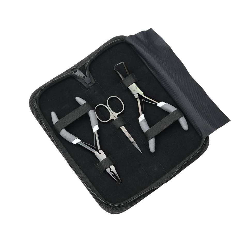 Kit d'outils pour extensions de cheveux à micro-anneaux avec pinces à sertir à dents flexibles pour une fermeture sécurisée des perles, poignée en mousse et ciseaux de coupe