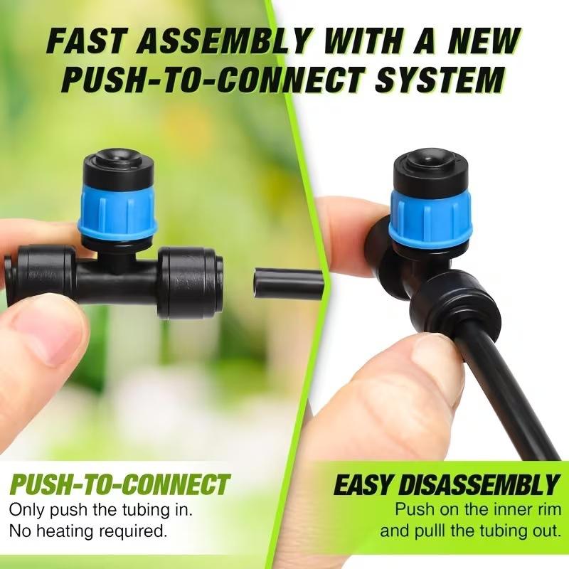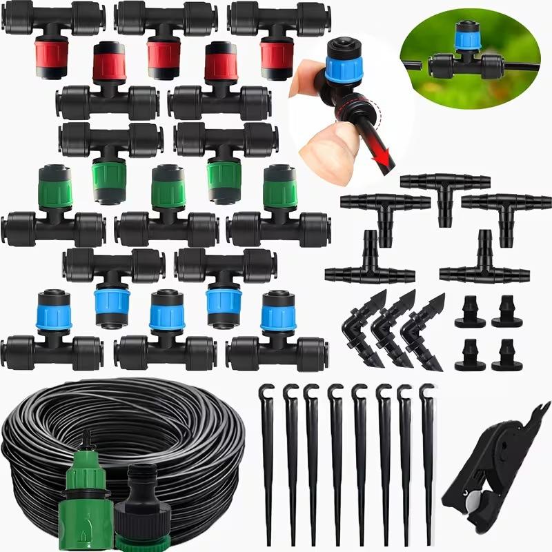 Kit d'irrigation par micro-pulvérisation 1/2 pouce à connexion rapide PVC/PP, système d'arrosage de jardin automatique avec tuyau goutte-à-goutte et buse réglable