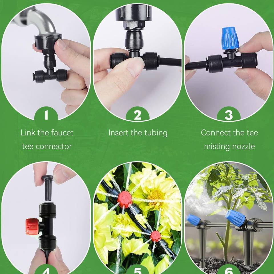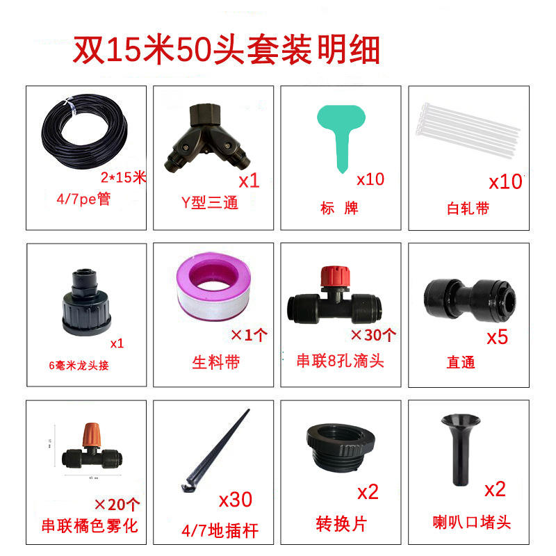Kit d'irrigation par micro-pulvérisation 15m, double ensemble, raccord rapide PVC, arrosage automatique pour jardin, jardinière, serre, système d'irrigation goutte-à-goutte