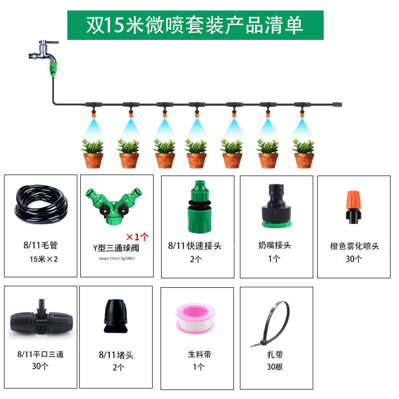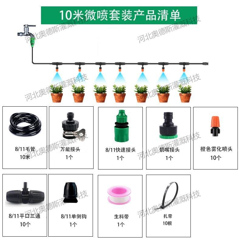 Kit de micro-pulvérisation 10M, système d'irrigation goutte à goutte en PVC pour l'arrosage et l'humidification des plantes de jardin, avec buses de brumisation et connecteurs