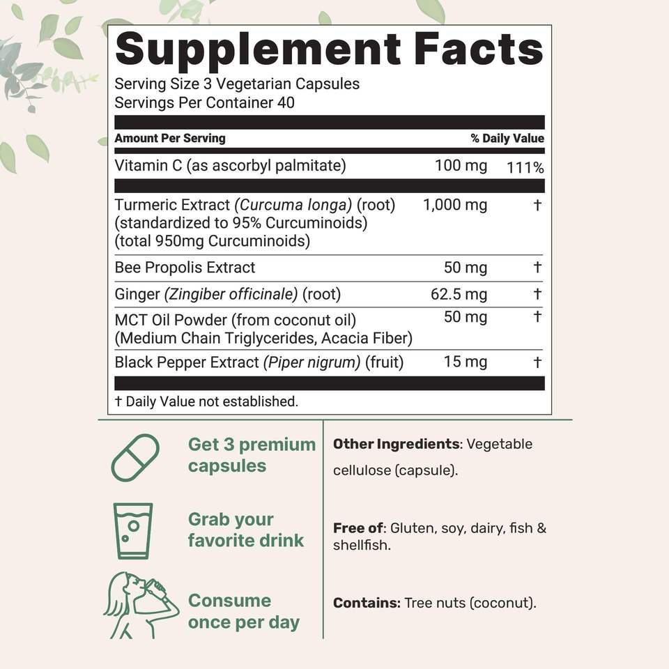 Micro-complément Curcuma Curcumine en capsules 1 000 mg | Capsules pour adultes à base de curcuminoïdes à 95 %, de poivre noir et d'huile MCT