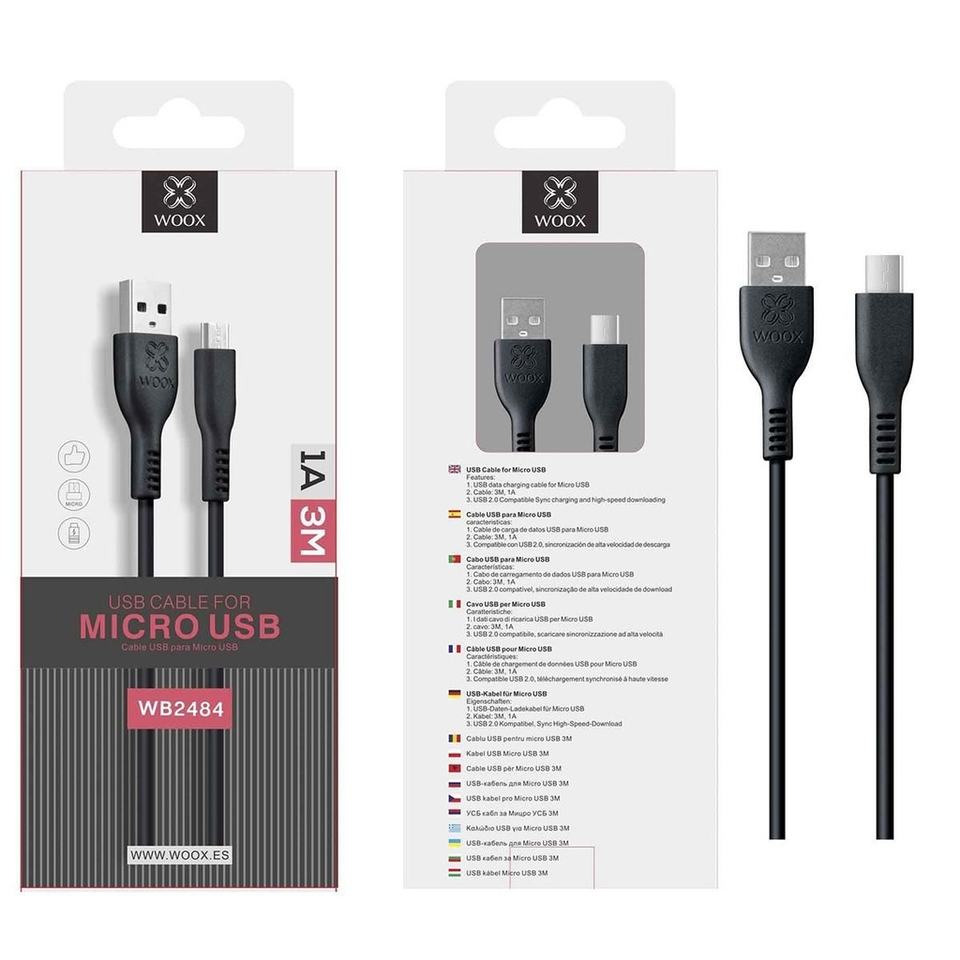 Câble Micro USB V8 1A 3m noir-Chargement efficace pour gadgets