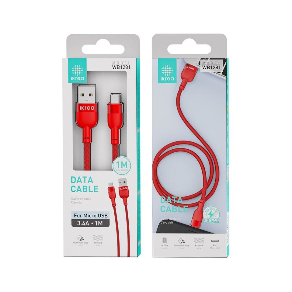 Câble Micro USB 1m 3.4A Rouge avec finition aluminium