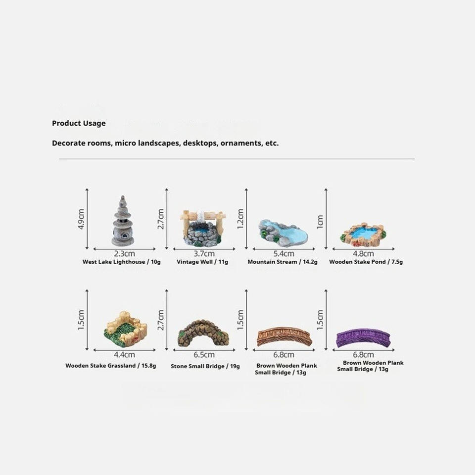 Ornements de scène en résine rétro antique pour micro-paysage, avec phare du Lac de l'Ouest, puits d'eau, petite fontaine et pont avec eau courante