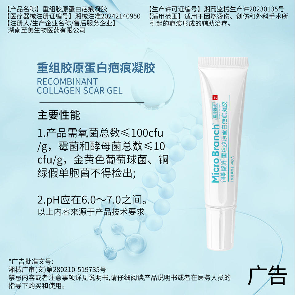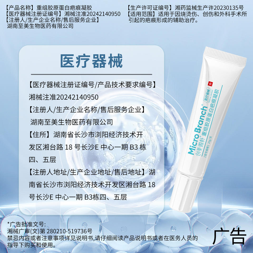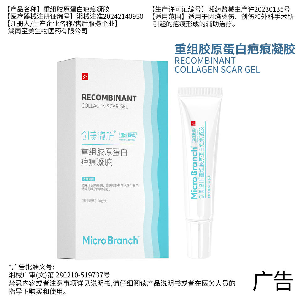 Gel cicatrisant au collagène recombinant MicroBranch 20g, facilement absorbable, pour les brûlures et les cicatrices chirurgicales