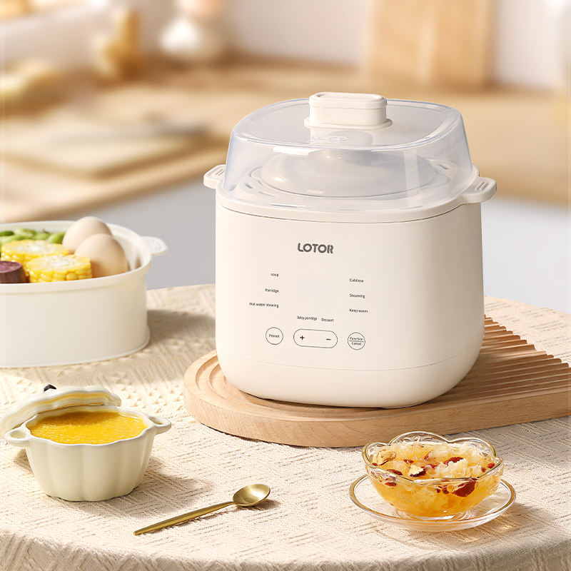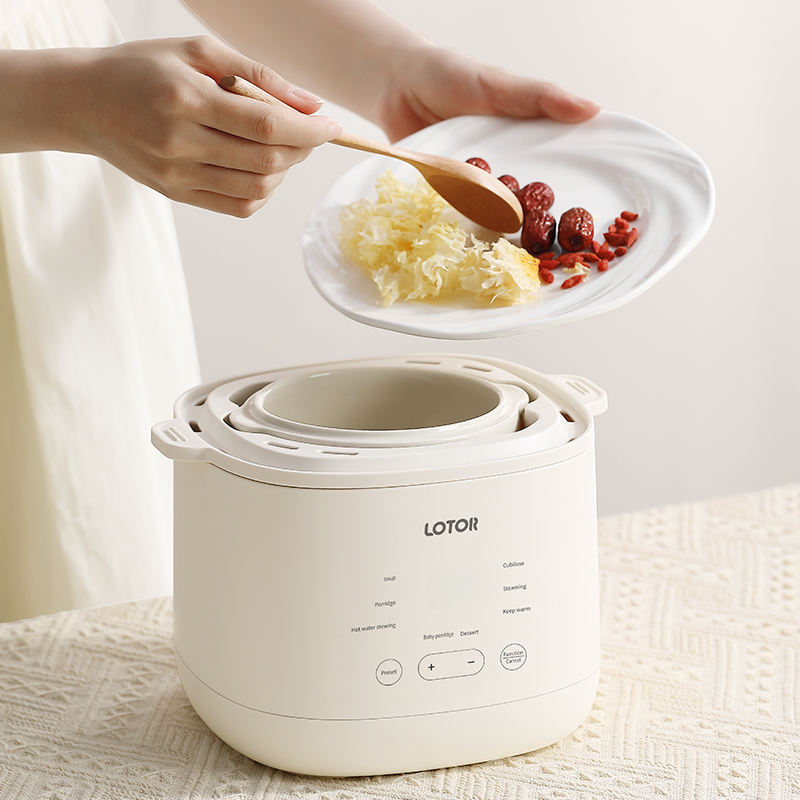Micro-ordinateur contrôlé 200W Pot intérieur en céramique 1L blanc Mini marmite électrique polyvalent ménage mijoteuse