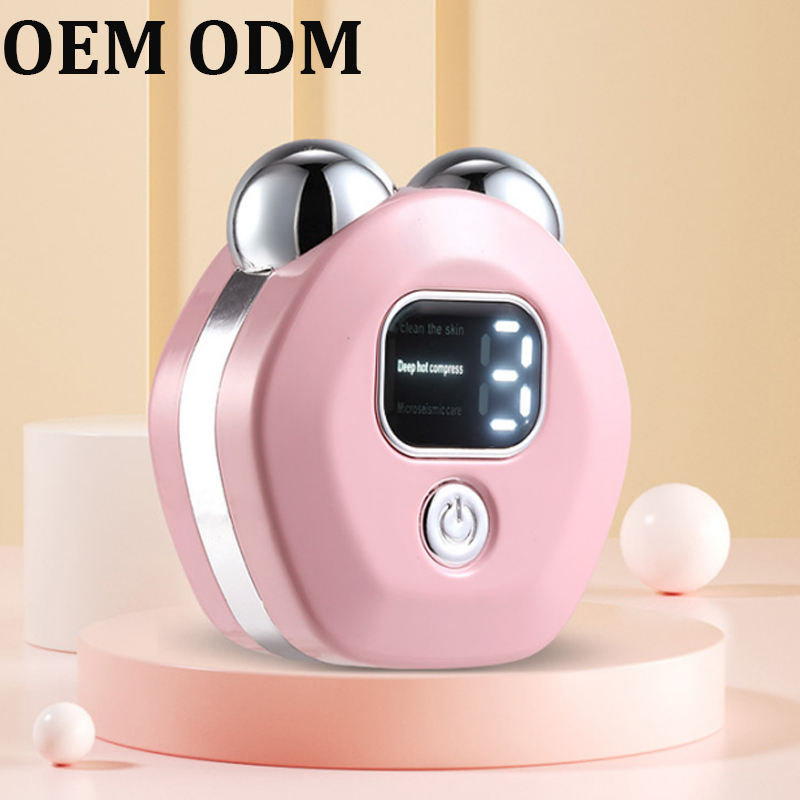 Appareil de levage de visage à micro-courant compresse chaude EMS outil de soin de raffermissement de la peau masseur à Double rouleau soins du visage