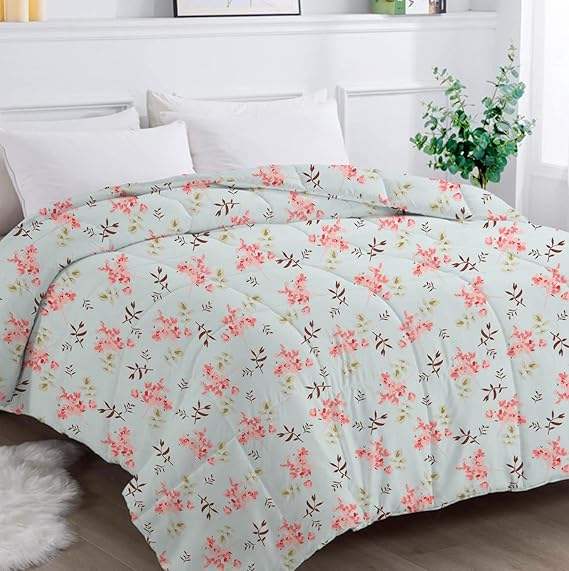 Couette/édredon en microfibre pour climatisation, toutes saisons, hiver doux, taille King, couverture matelassée 3 couches, lit simple 240cmX152cm Rose & Beige