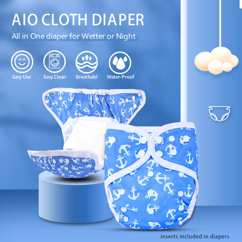 Microfibre bébé AIO couche en tissu réutilisable impression numérique douce lavable poche écologique pour une utilisation de nuit bébé rentable