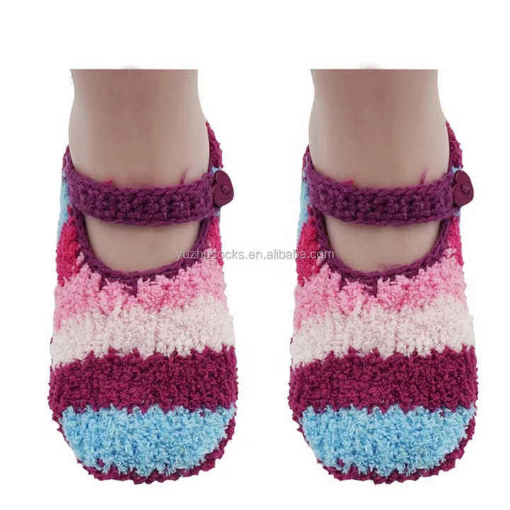Microfibre Bébé Toddler Fuzzy Hot Slipper Chaussettes Tricot Motif Crochet Bébé Chaussettes Enfants Intérieur Chaussures Chaussettes